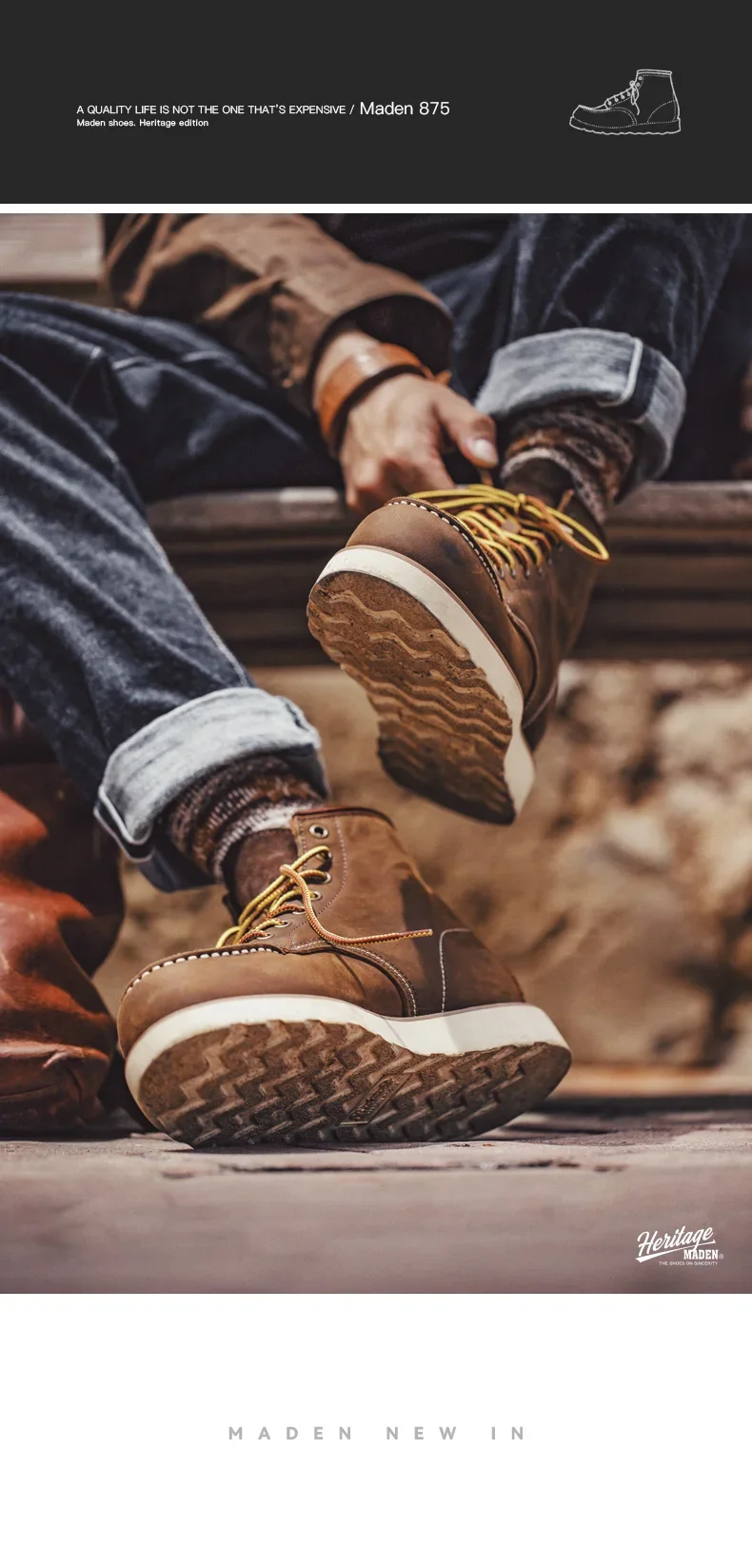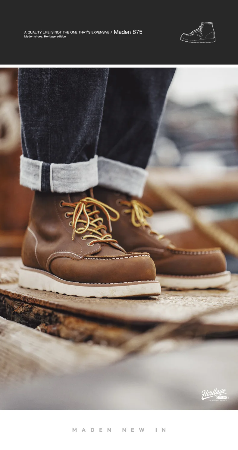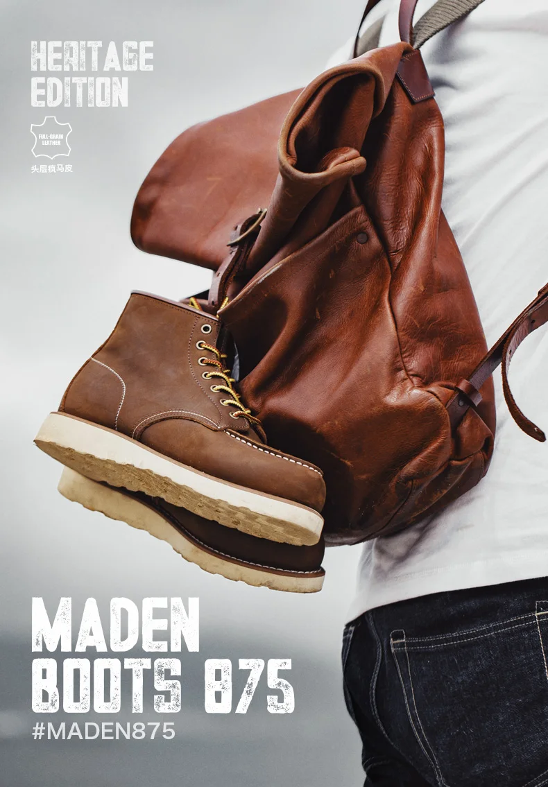 1. Classic retro 875 work boots, with crazy horse leather craftsmanship. The upper material is top-layer cowhide, and the sole material is rubber.