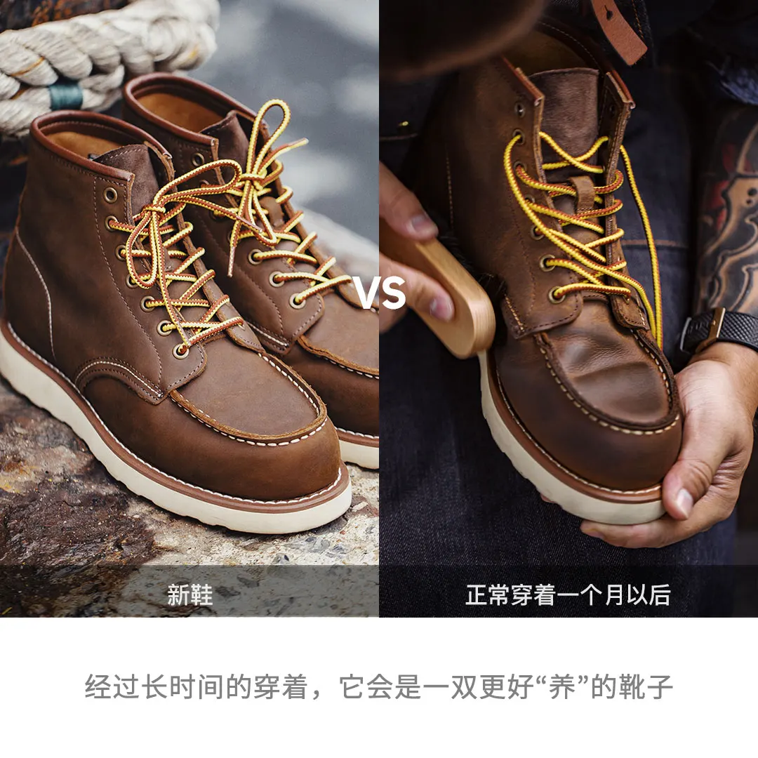 4. After long-term wearing, the boots will fit the foot shape better and produce a unique aging effect. For daily maintenance, you can apply oil and wax.